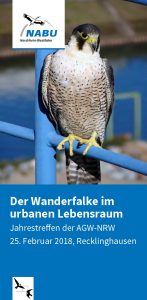 Bestandssituation sowie die Brut- und Beringungsergebnisse vor. Über neue Erkenntnisse zu Verhalten und Strategie von Uhu und Wanderfalke am Brutplatz insbesondere im urbanen Bereich wird berichtet. Die schriftliche Zusammenfassung der Saison 2017 im Jahresbericht der AGW-NRW wird ebenfalls vorgestellt. Diesjährige Gastreferenten sind Prof. Dr. Oliver Krüger von der Uni Bielefeld mit dem Thema „Faszinierende Greifvögel“ und Dr. Michael Lakermann aus Köln. Er berichtet über den Habicht in den Großstädten NRWs. Außerdem werden die Ziele der kommenden Jahre im Wanderfalkenschutz diskutiert. Beiträge von Aktiven der AGW-NRW sowie Ergebnisse aus den anderen Bundesländern runden den Tag ab.